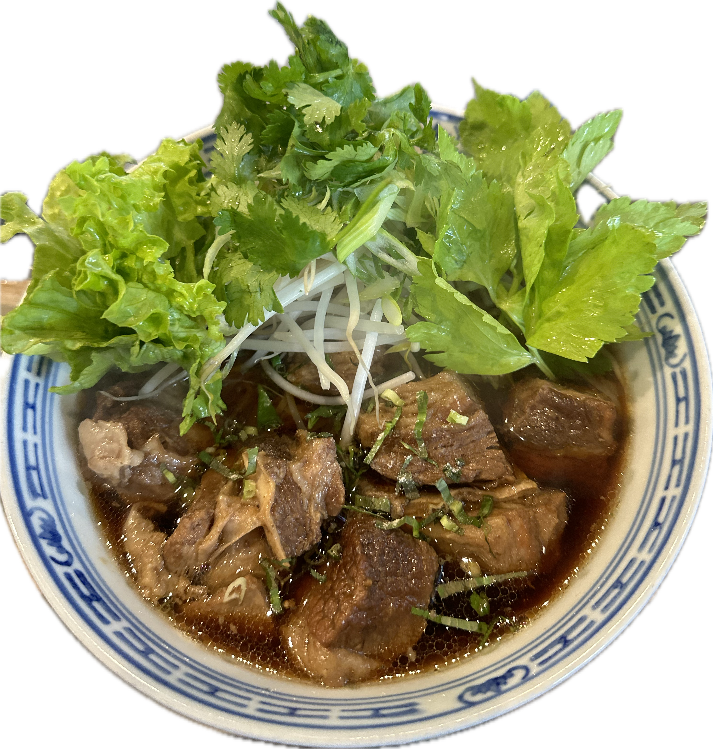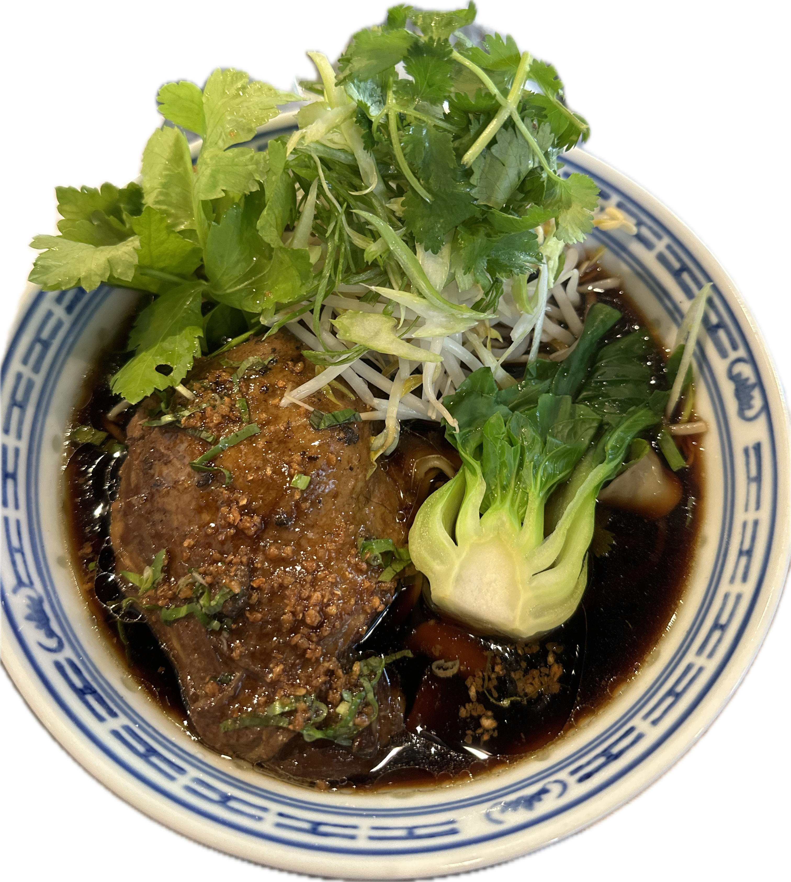 Braised beef brisket in an aromatic soy broth, Asian celery and lettuce.
